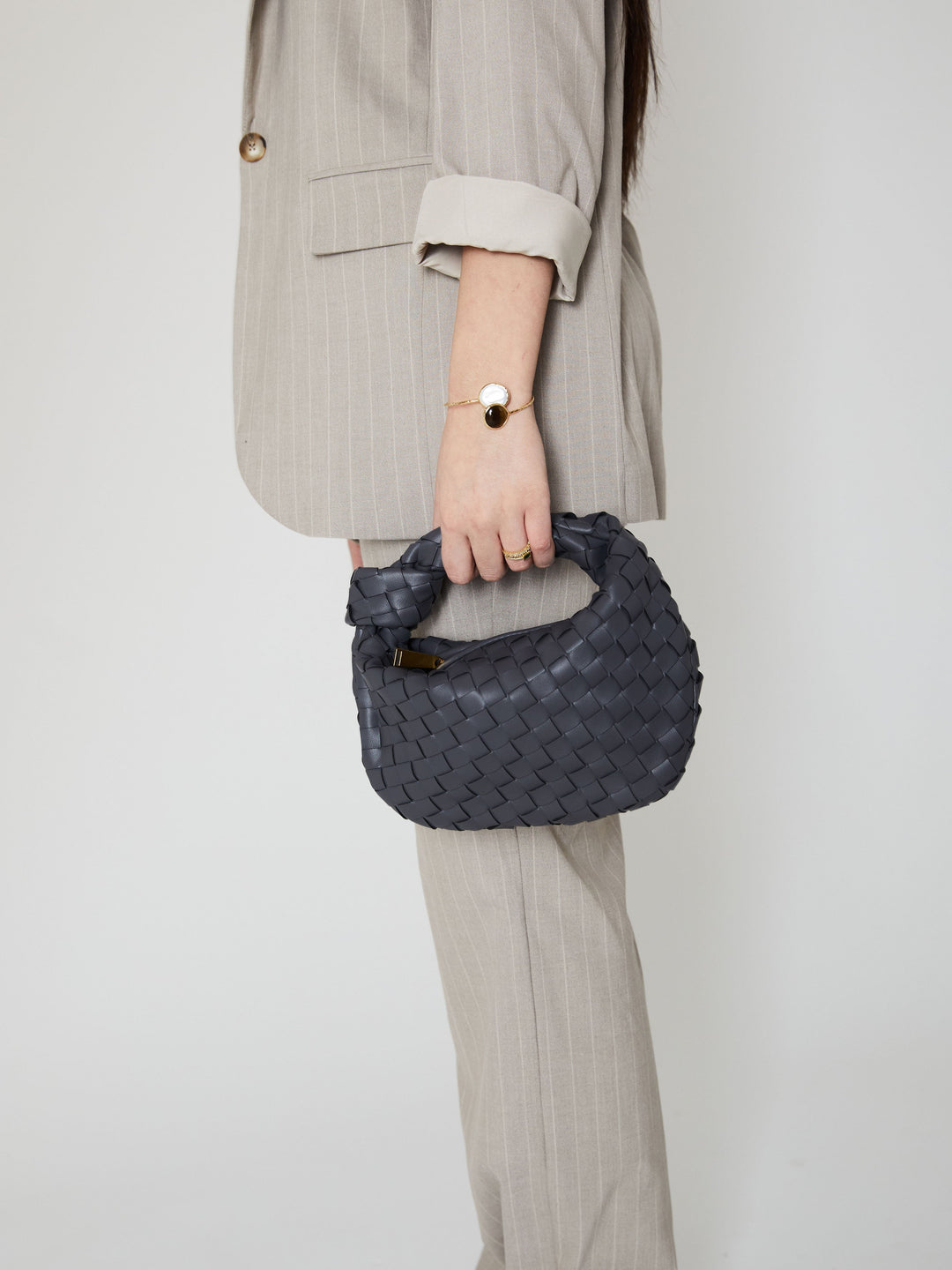 Viola | Chique Sac à Main en Tissu Gris Foncé avec Tissage Élégant