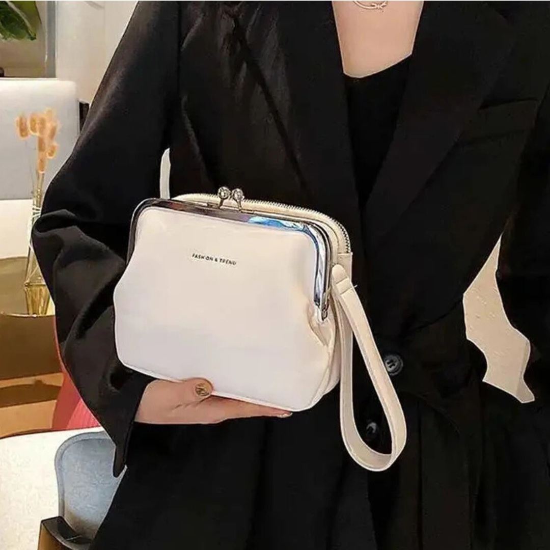 Ta saszetka ma minimalistyczny i elegancki wygląd, dzięki metalowym zatrzaskom w stylu vintage i bardzo wytrzymałej podeszwie. Jego kompaktowa forma jest idealna do przenoszenia niezbędnych napojów, a luksusowy materiał i delikatny kolor nadają mu wyjątkowego charakteru.