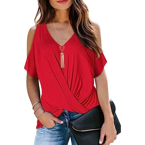 Elegancki damski top z dekoltem V i odkrytymi ramionami – stylowy i modny wybór