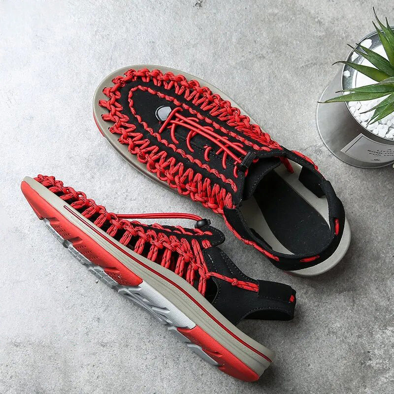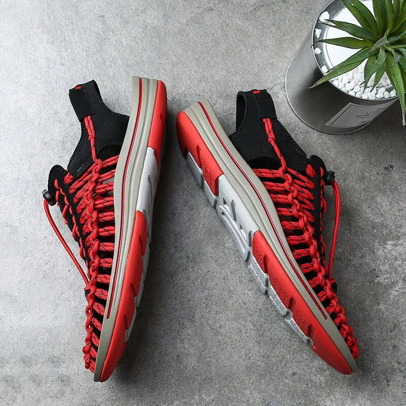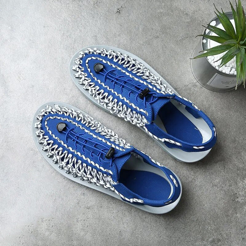 Odkryj najlepsze letnie obuwie dzięki naszym sandałom męskim, które łączą innowacyjny styl i wygodę. Charakteryzujące się unikalnym tkanym wzorem, sandały te oferują świeże i nowoczesne podejście do klasycznego letniego wyglądu. Regulowane nylonowe sznurowadła zapewniają idealne dopasowanie i dopasowanie do stopy, zapewniając wygodę. Oddychająca konstrukcja zapewnia stopom chłód i wygodę, dzięki czemu są one niezbędnym elementem letniej garderoby - idealnym na plażowe przygody lub swobodne spacery.