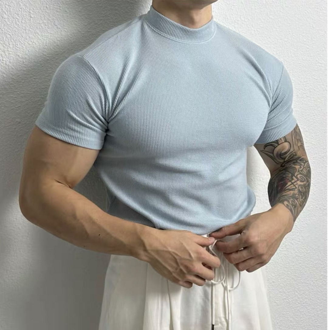 Heinrich | Modny prążkowany T-shirt z elegancką stójką dla swobodnego stylu