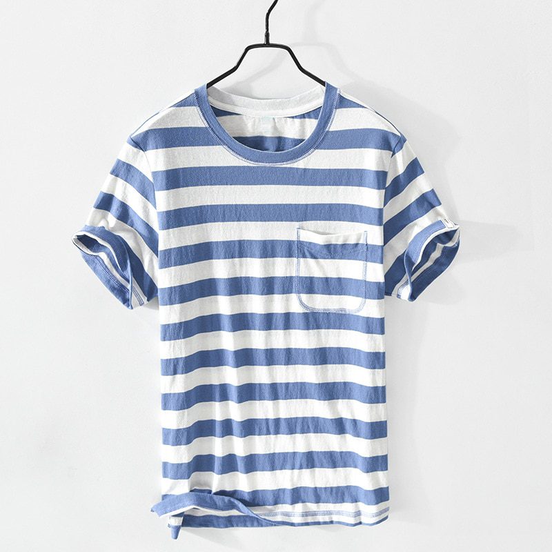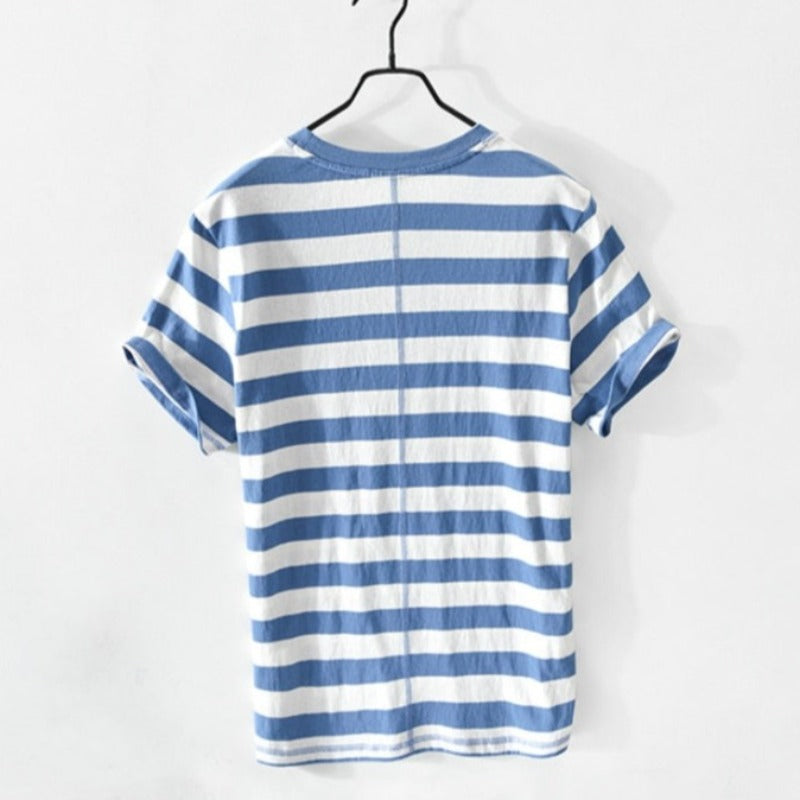 Florian | Modisches gestreiftes T-Shirt mit Brusttasche im modernen skandinavischen Stil