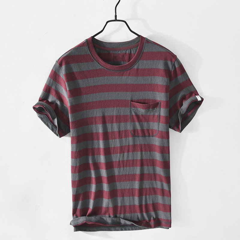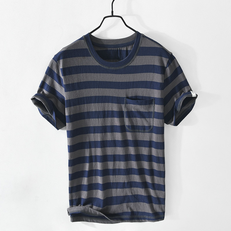 Florian | Modisches gestreiftes T-Shirt mit Brusttasche im modernen skandinavischen Stil