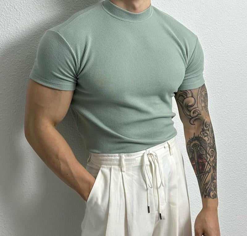 Das Heinrich-T-Shirt trifft den Kern des modernen Minimalismus. Der taillierte Schnitt betont die Silhouette, während die weiche Rippstruktur und der kurze Stehkragen für ein stilvolles Update sorgen. Ob zu einer lässigen Stoffhose oder einem eleganten Look, das Heinrich verleiht Ihrem Outfit sofort Charakter.